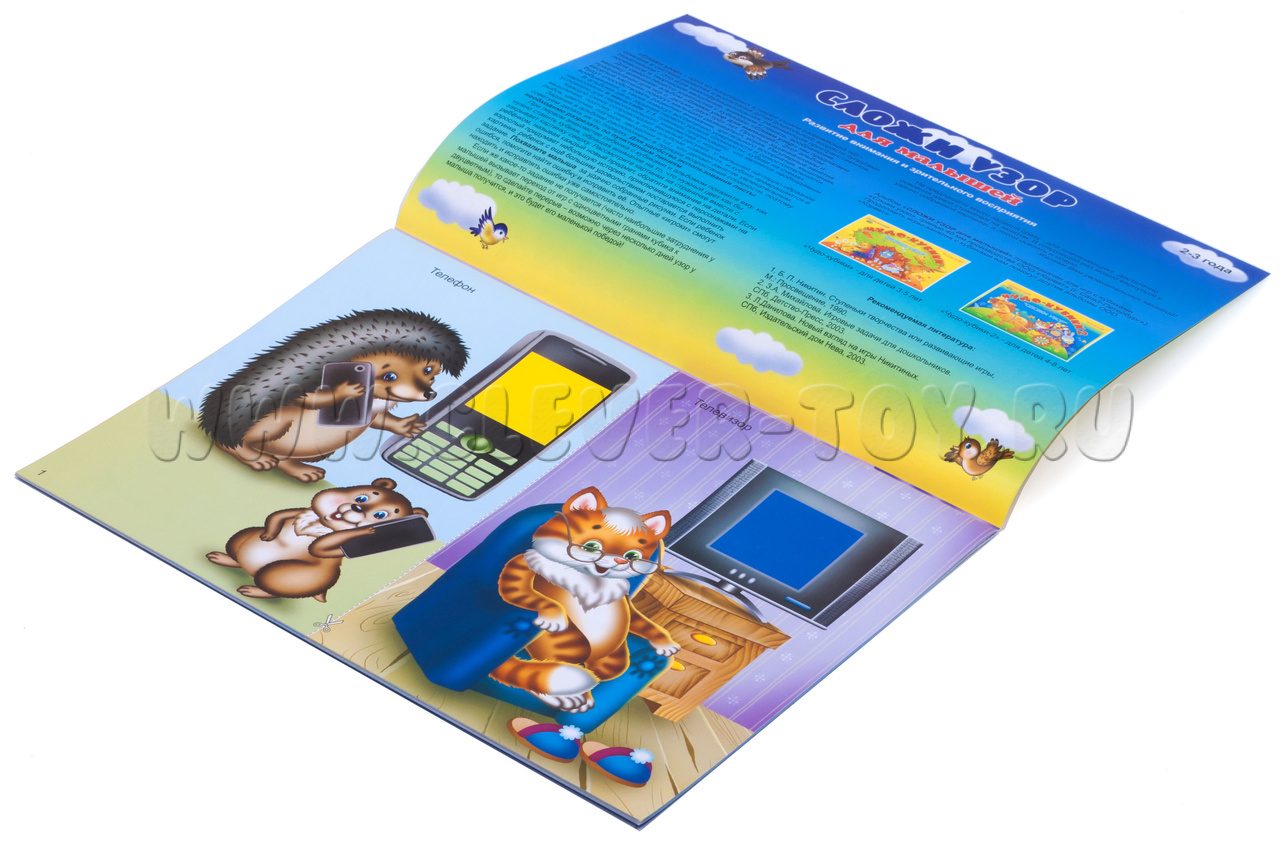 Альбом-игра "Сложи узор для малышей" предназначен для первоначального знакомства ребенка 2-3 лет с кубиками Никитина "Сложи узор".