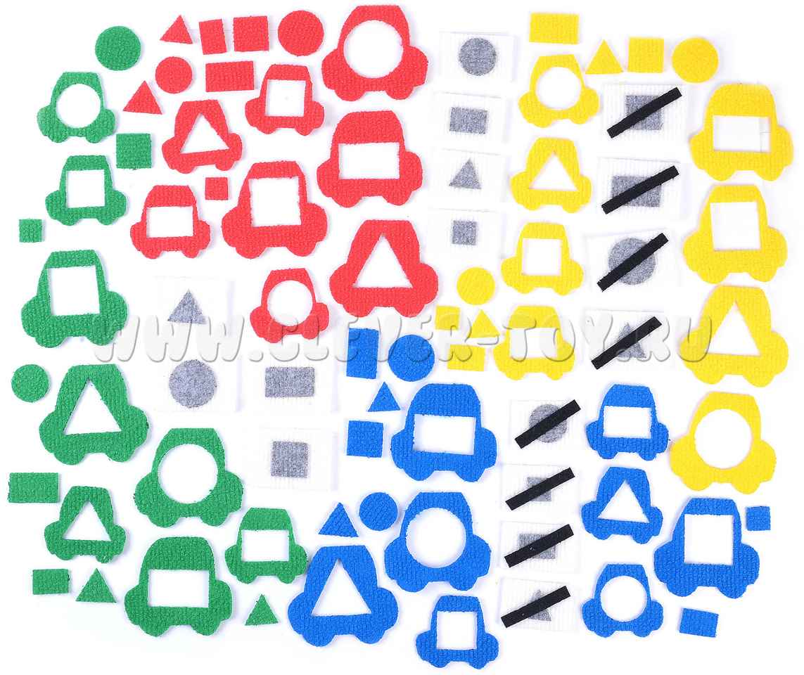 - машинки большие 16 штук по 4 каждого цвета, машинки малые 16 штук;