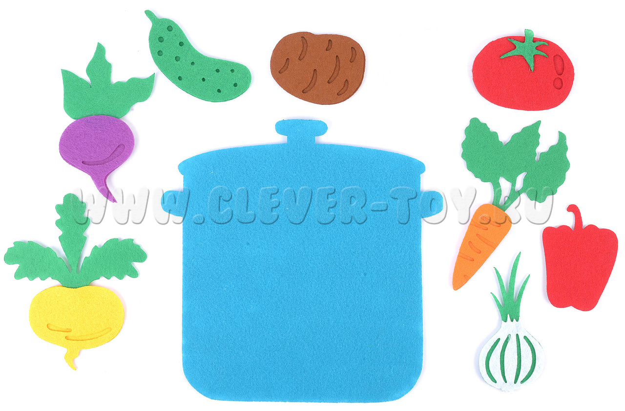 • Набор из 10 фигурок (овощи, кастрюля),