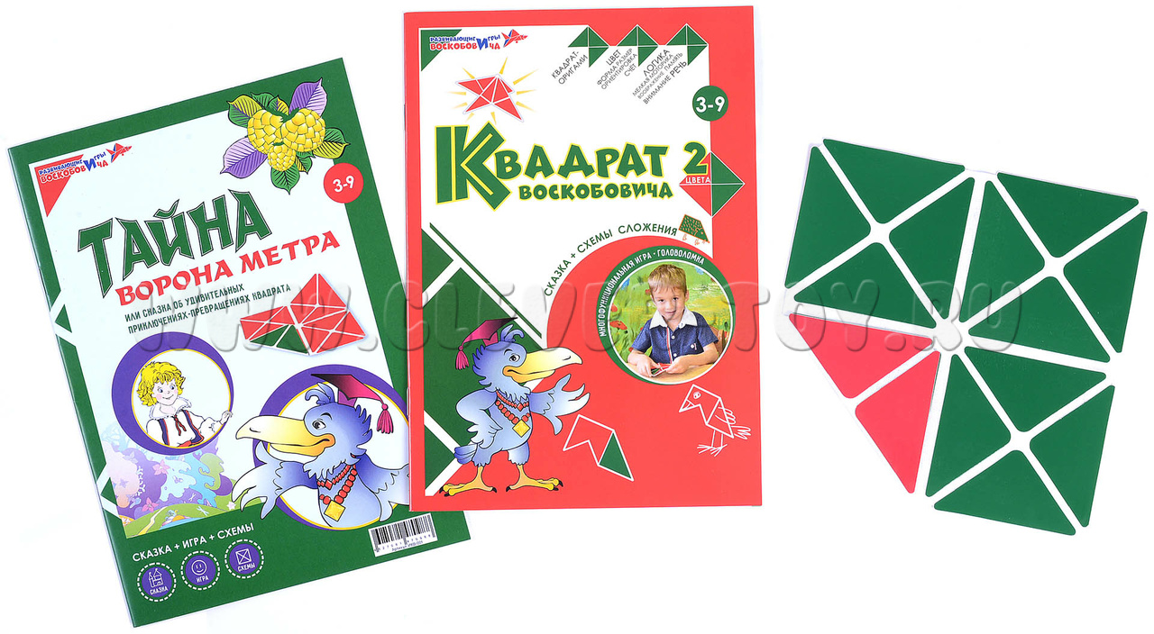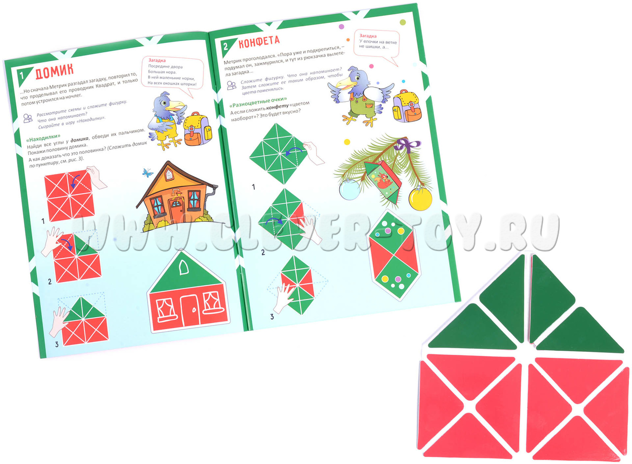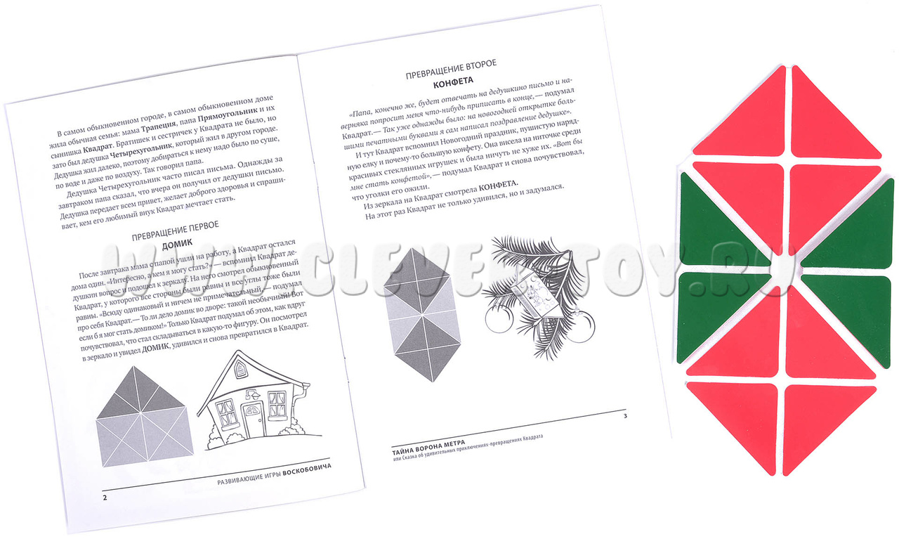 Комплект, состоящий из игры-головоломки на трансформацию фигур и авторского методического пособия-сказки «Тайна Ворона Метра».