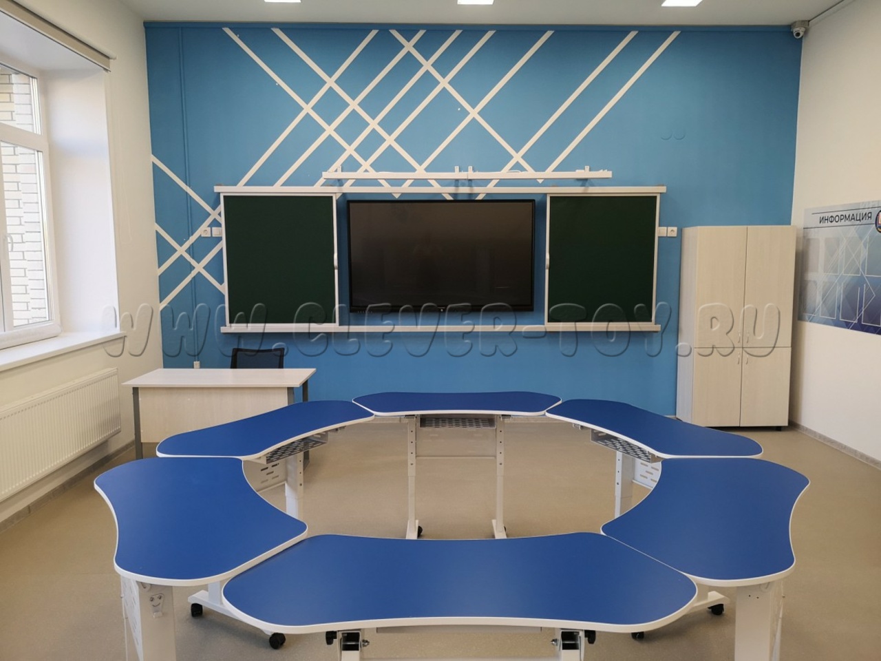 Рельсовая система — это цельная конструкция, состоящая из каркаса и четырёх рабочих поверхностей. Покрытие может быть магнитно-меловым, магнитно-маркерным или комбинированным.