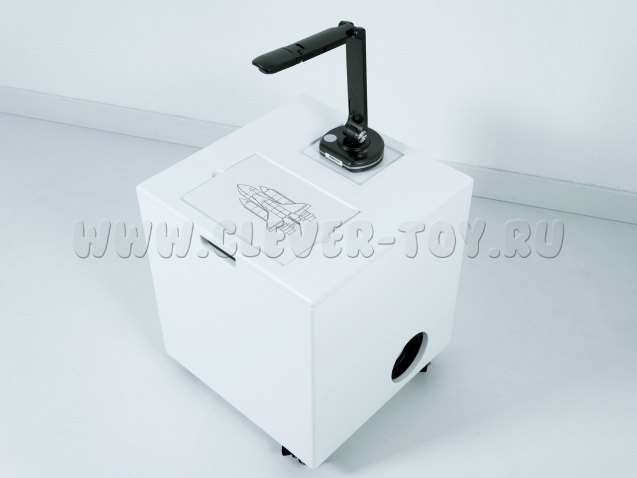 Благодаря подвижной платформе и компактным размерам "Творческую студию" легко перемещать между помещениями, а яркий проектор позволяет выводить изображение на различные поверхности.