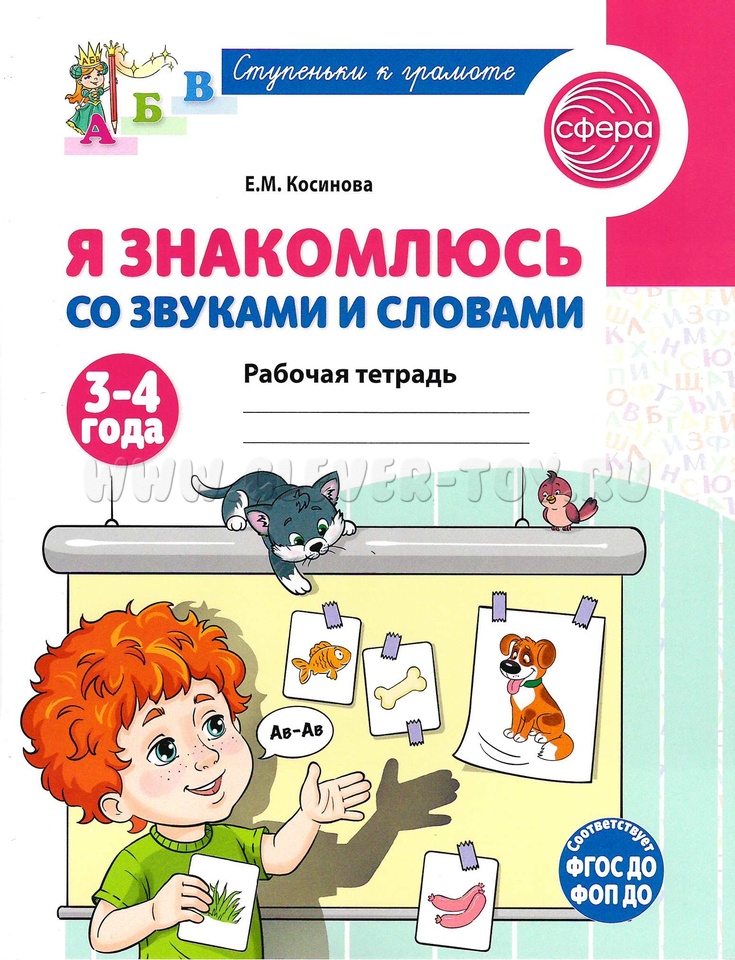Цветная рабочая тетрадь "Я знакомлюсь со звуками и словами" для детей 3-4 лет.
