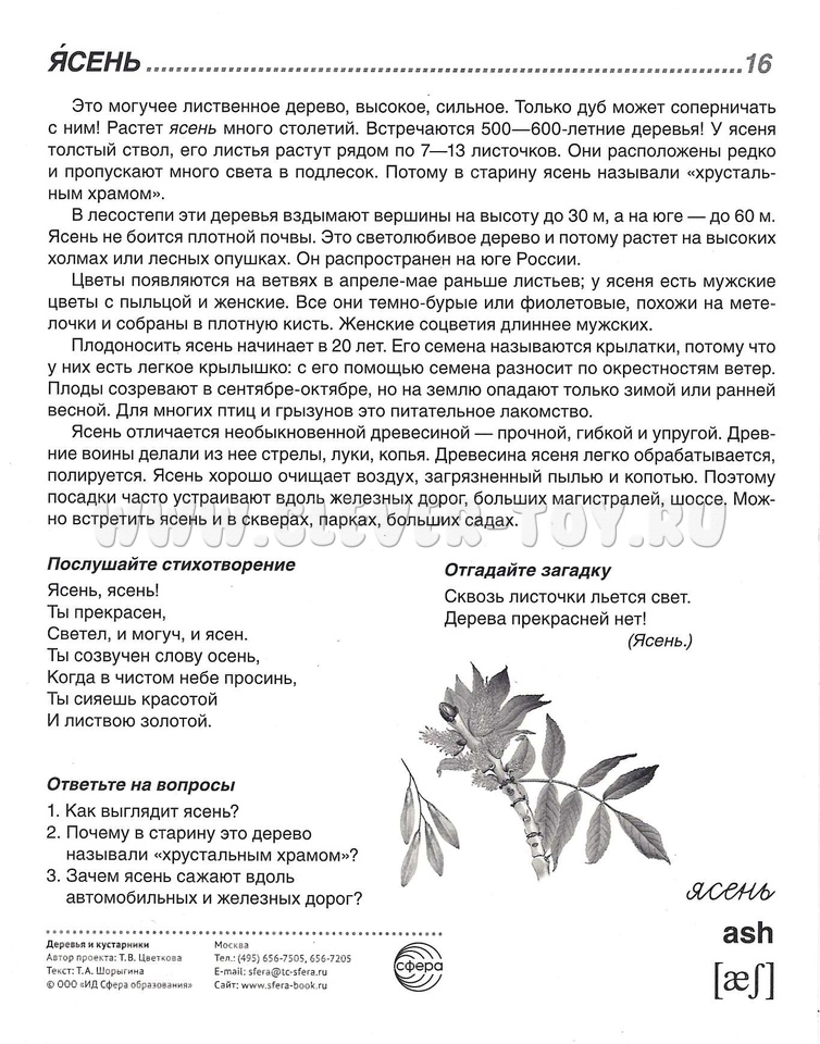 Состав комплекта (16 карточек): Берёза, Бузина, Вяз, Дуб, Ель, Ива плакучая, Каштан конский, Клён, Липа, Ольха, Осина, Сирень, Сосна, Тополь, Черёмуха, Ясень.