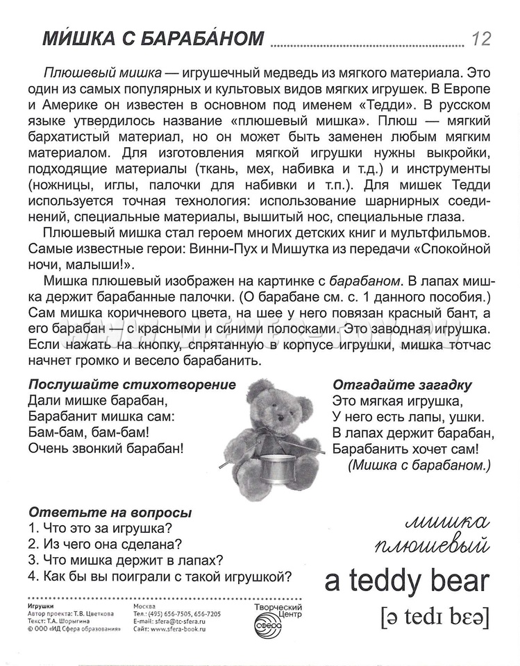 16 демонстрационных картинок для познавательного и речевого развития. На обороте каждой предметной картинки - описание, стихотворение, загадка, вопросы для ребёнка, название на русском и английском языках.