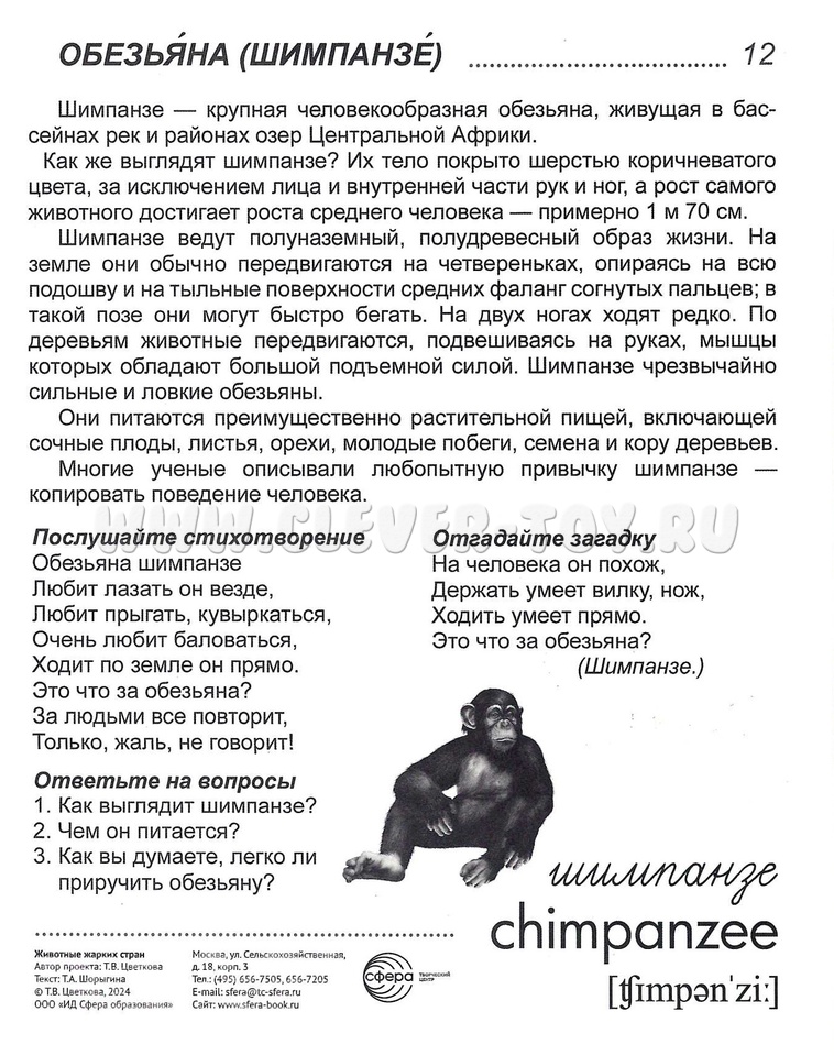 На лицевой стороне каждой карточки дается цветное изображение животного, на обратной - подробное описание, из которого дети узнают много интересного и поучительного. Для лучшего закрепления материала представлены оригинальные стихотворения и рифмованные загадки по теме, а также вопросы, на которые ребенок ответит после изучения материала или беседы со взрослым.