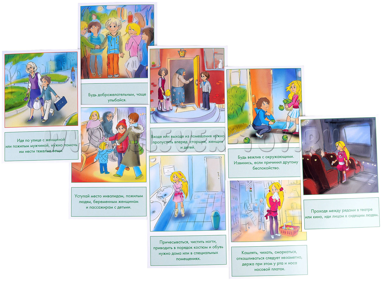 Дидактические карточки "Правила поведения" адресованы воспитателям ДОУ, логопедам, психологам, учителям начальных классов и родителям для занятий с детьми старше 3 лет и нацелены на формирование у детей: