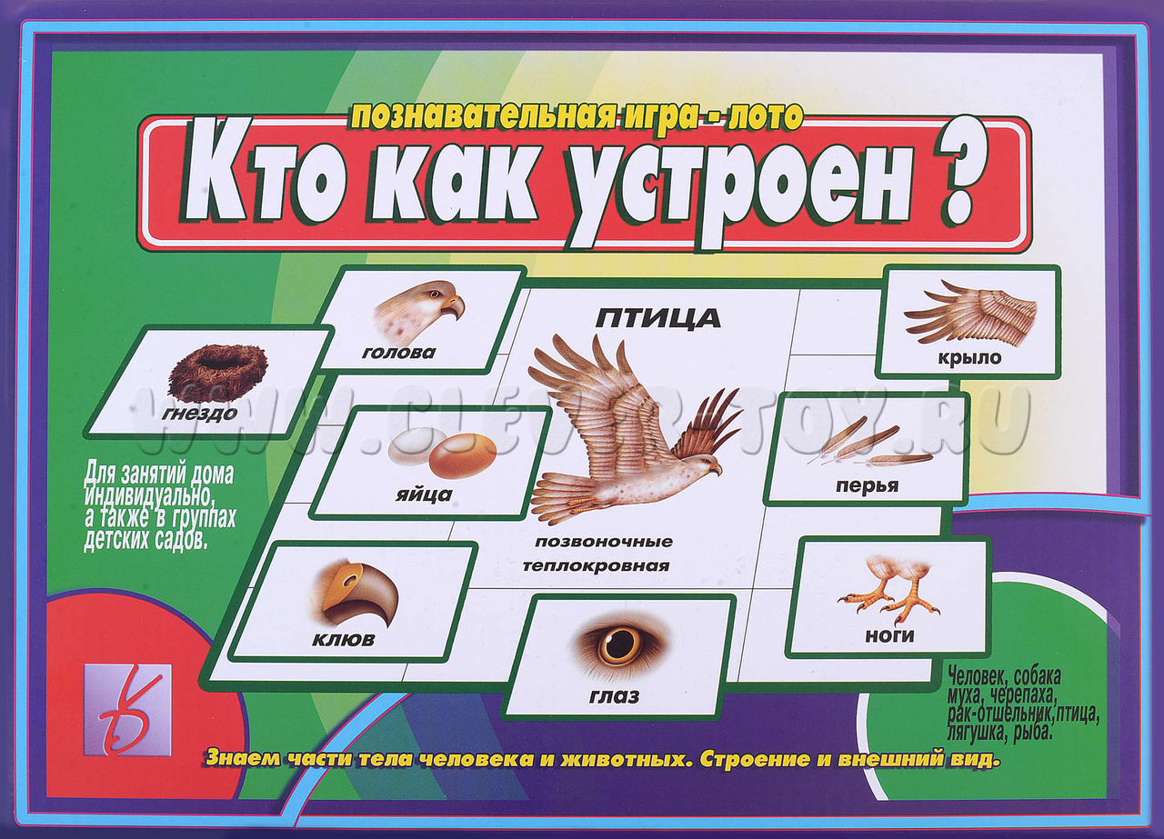 - Ведущий показывает маленькие карточки с частями тел, а дети смотрят, подходят ли они их животному. Кто первым правильно закроет большую карту, тот и выигрывает.