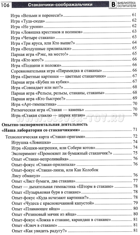 Из книги вы узнаете об интеллектуальных, музыкальных, математических, речевых играх со стаканчиками, об опытно-экспериментальной деятельности.