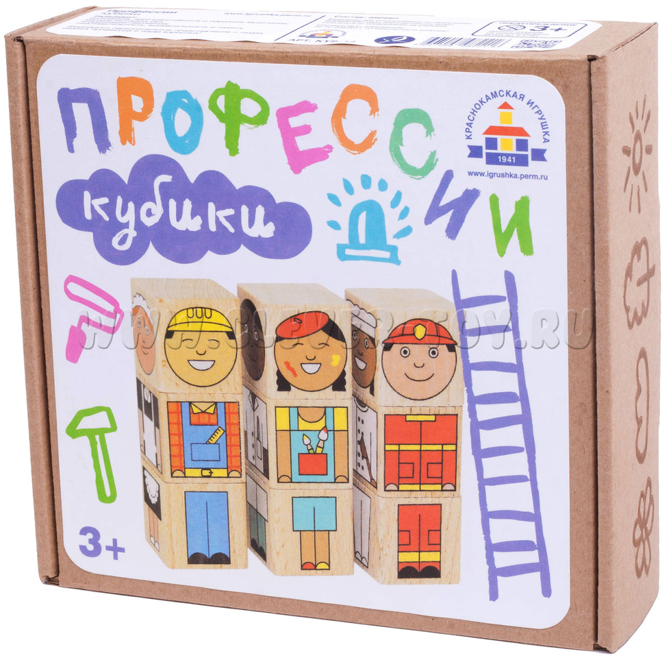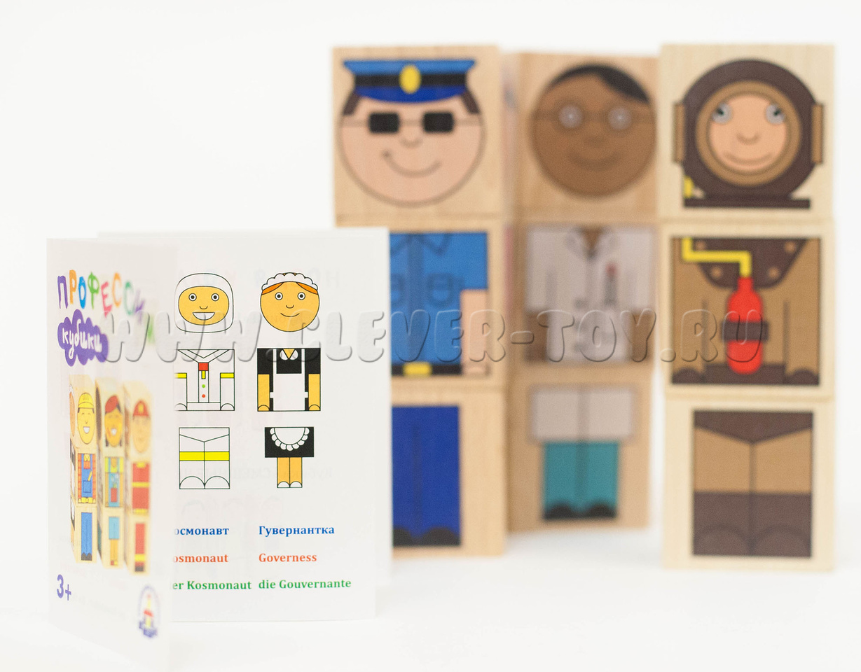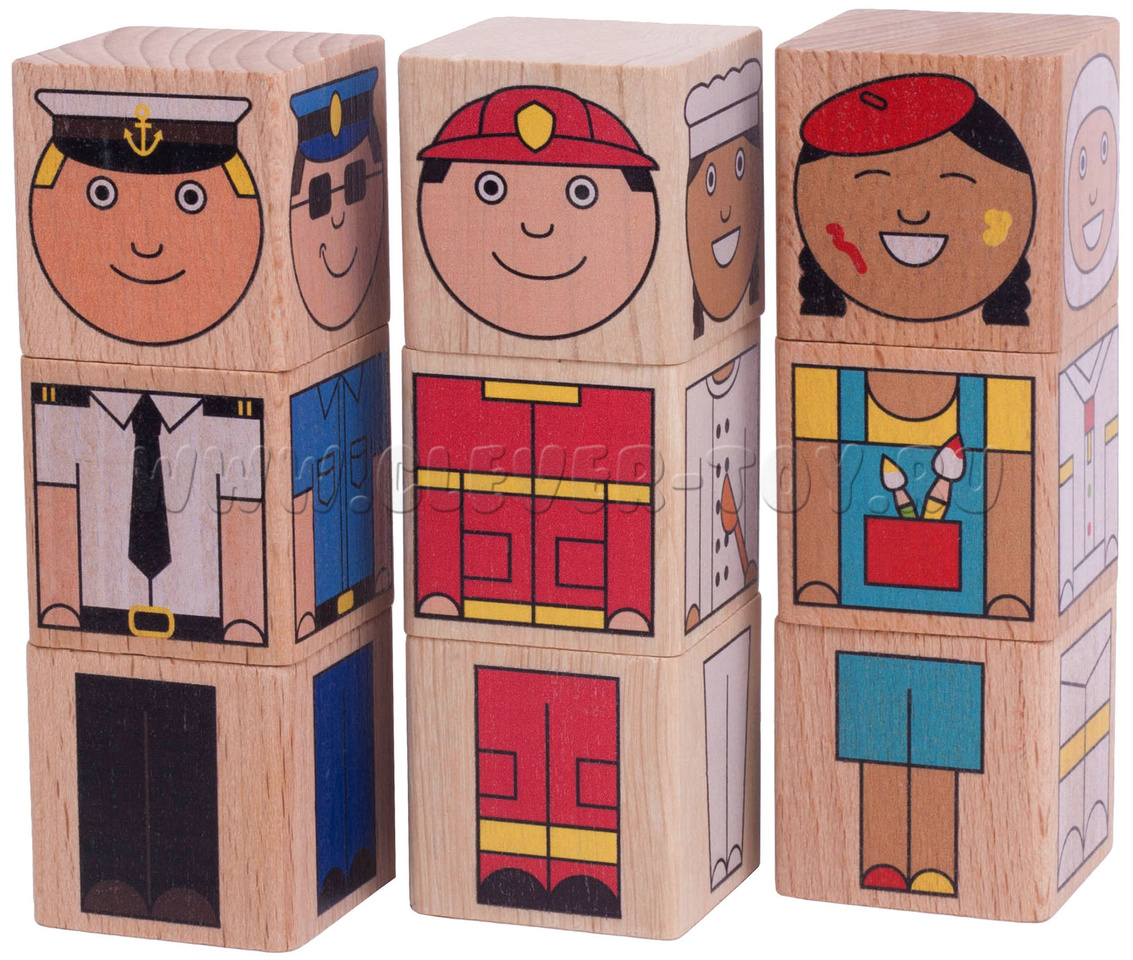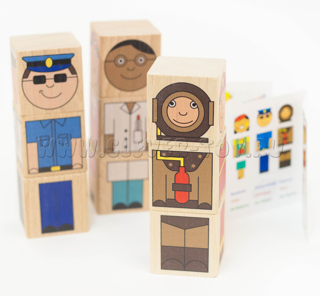 В комплект "Профессии" входит 9 деревянных кубиков: