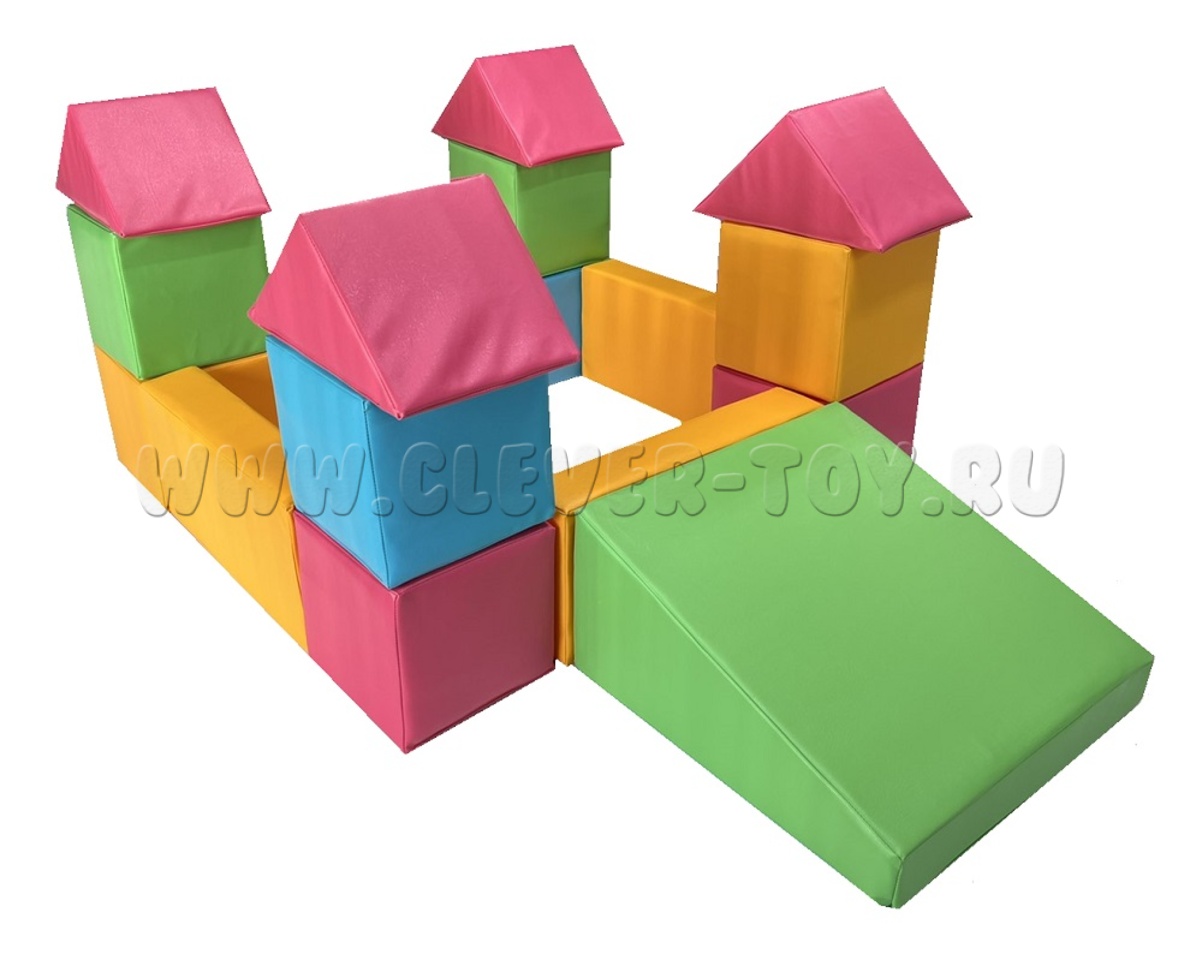 Комплектация: куб – 24х24х24 – 8 шт. горка – 50х50х24 – 1 шт. брус – 50х24х10 – 4 шт. треугольник – 34х24 -4шт.