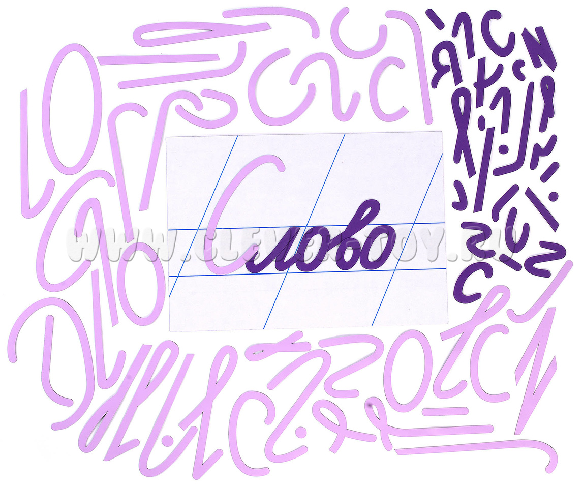 В наборе: 70 магнитных карточек - элементов букв.