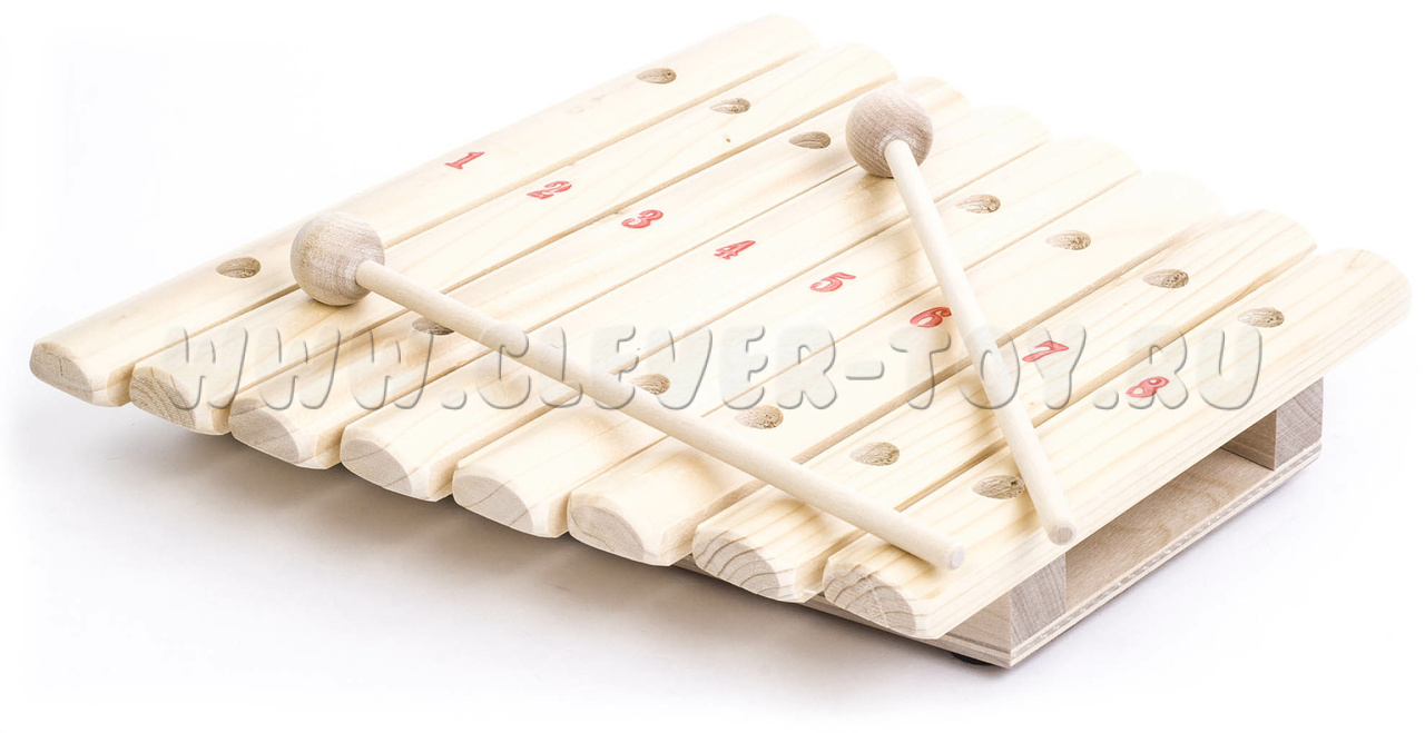 Ксилофон - древний музыкальный инструмент. Он был особенно популярен в Африке, Южной Америке и Азии и имел различное строение, местами даже очень сложное. В Европе и России он прибрел популярность с опозданием. Наш ксилофон сделан из ели и состоит из 8 пластин, обладает не большим размером, и идеально подойдет для начинающих музыкантов. Несмотря на то, что ксилофон не красочный, он обладает интересным, звучанием и без труда сможет привлечь внимание ребенка. Детям будет интересно разучивать любимые мелодии из советских мультфильмов или сказок, ведь на нем очень просто обучаться. Многие думают, что когда ребенок учится играть на каком-то музыкальном инструменте, то он развивает только один определенный навык, но на самом деле, музыкальные инструменты служат разностороннему развитию навыков и умений.