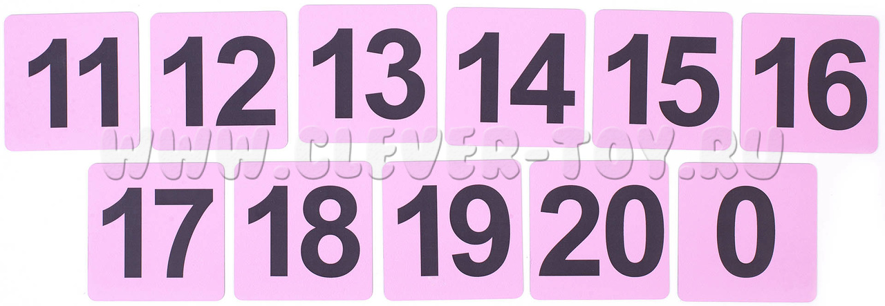 • Число 0 и числа от 11 до 20 (по одной карточке). Так мы поможем ребятам преодолеть переход от первого десятка ко второму.