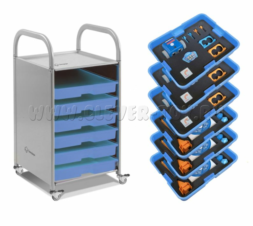 - 81 аксессуар для создания препятствий на пути робота: 24 палочек, 36 кубов, 6 конусов, 6 флажков, 6 мячей и ворота.