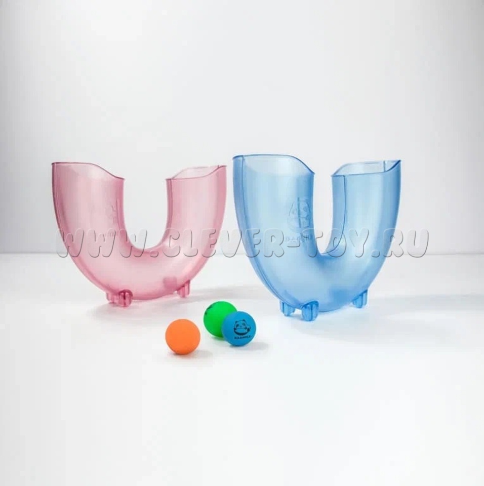 В набор входит голубая труба U-образной формы 23,5 х 8, х 17,5 см. и три шарика.