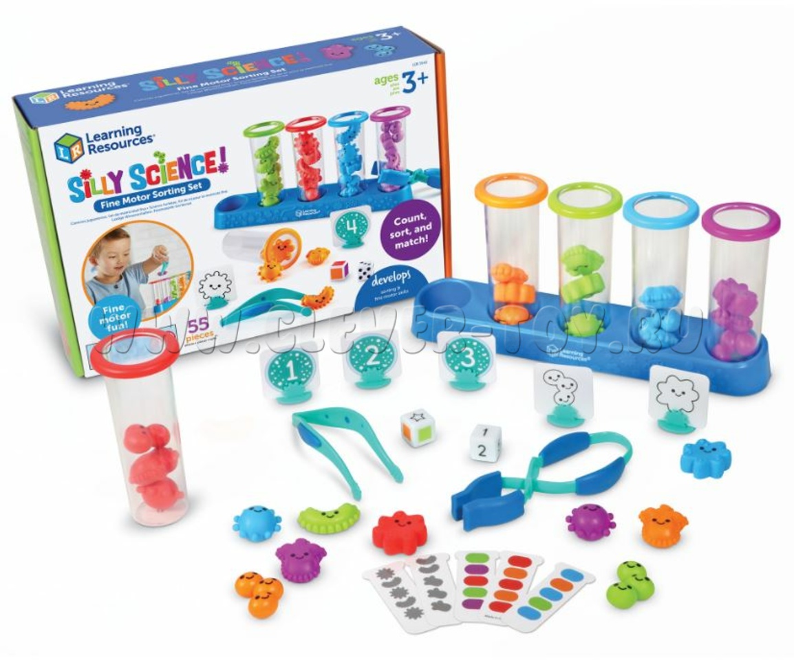• 2 пинцета, во время игры с которыми ребёнок разрабатывает свои пальчики и развивает мелкую моторику